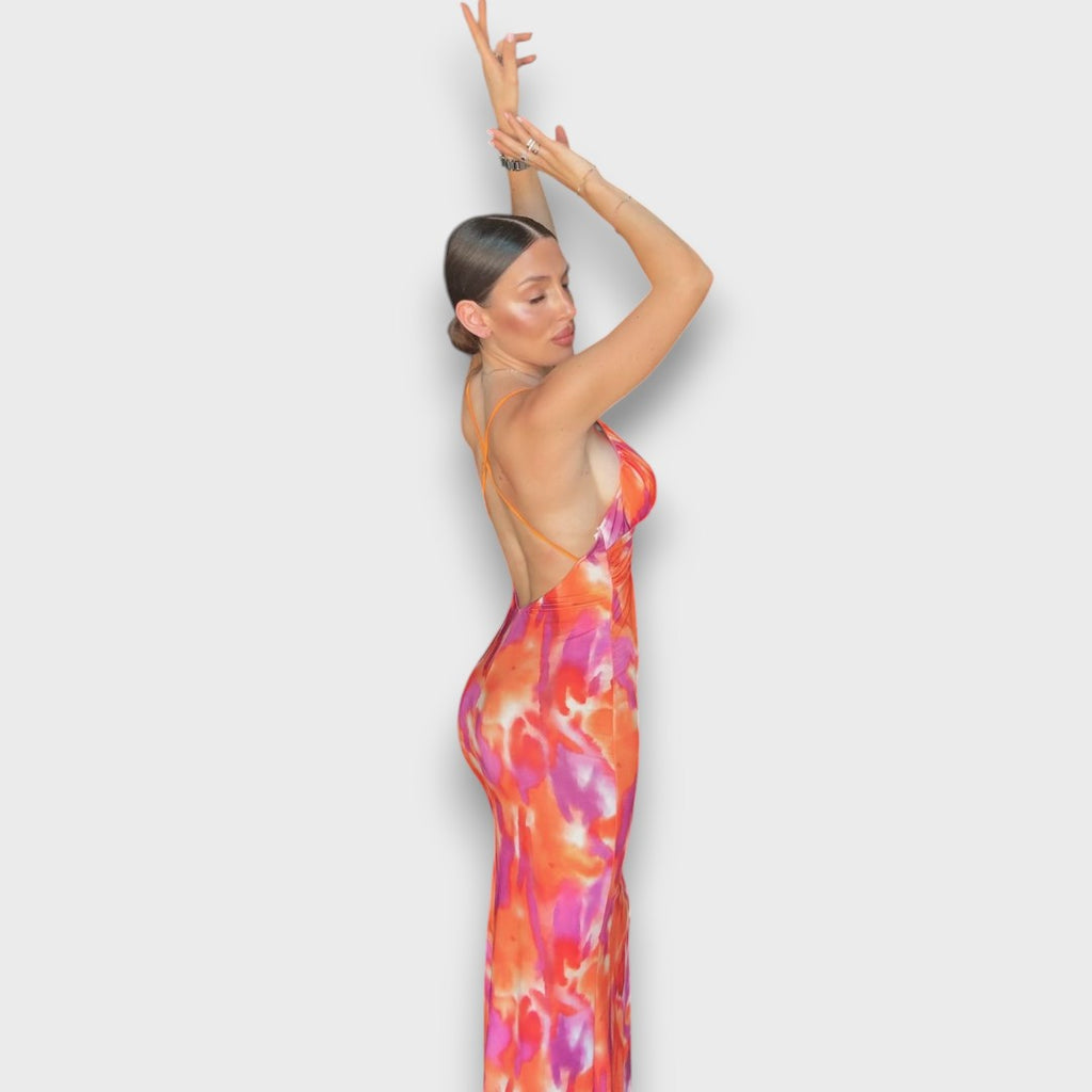 Ravena is pure summer energy – the figure-hugging design with a delicate neckline and fine straps accentuates the silhouette with playful elegance. The lightweight, flowing material moves effortlessly with you, giving the look a sensual lightness – perfect for warm evenings, sunny walks, and moments when you just want to shine.