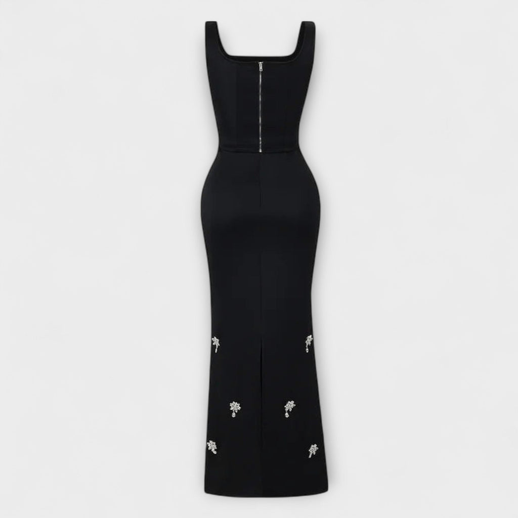 Aviane – Black Ensemble with Pearl Zipper Top and Skirt