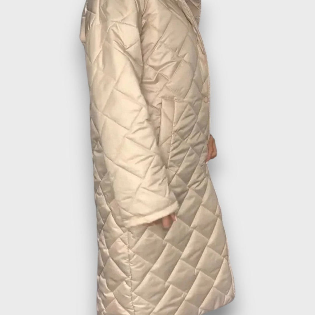 Modern yet cozy, this reversible coat combines timeless quilting with a bold twist. One side offers a sleek, minimalist look in soft ivory, while the inner leopard-print lining adds a touch of playful sophistication. Designed for versatility and warmth, it’s perfect for transitioning from day to night with effortless elegance.