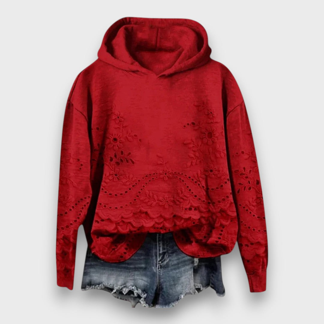Eryka brings a romantic, feminine twist to the classic hoodieβ€”blending soft comfort with beautiful lace artistry. With its delicate embroidered details and gently scalloped hem, it transforms an everyday piece into something effortlessly charming. The relaxed silhouette keeps it cozy and wearable, while the lacework adds a touch of refined elegance that feels special with every outfit.
