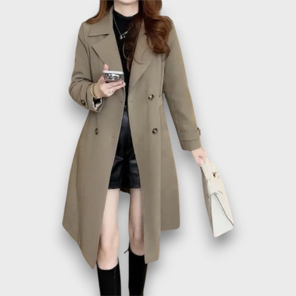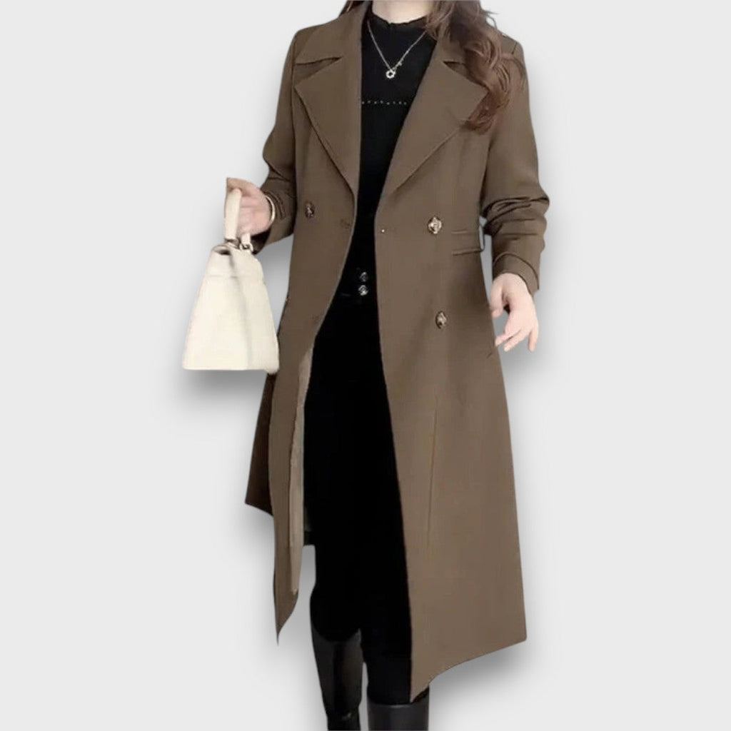 Laurisse embodies timeless sophistication. The long cut elongates the silhouette and expresses a calm, elegant presence. The simple shape is accentuated by subtle button rows, making the coat a versatile companion – whether in everyday life, at the office, or on special occasions. A coat that radiates confidence and style in every moment.