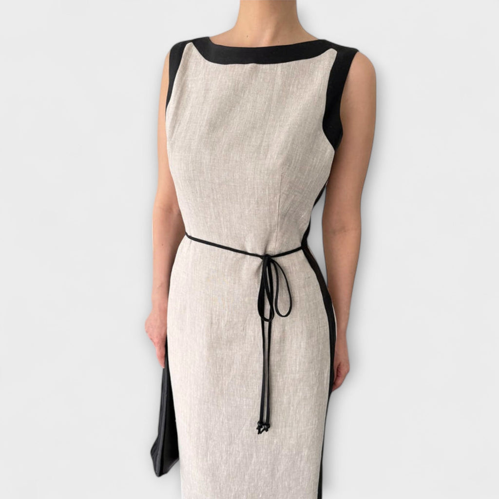 Avinya is a dress for strong silhouettes – featuring graphic contrasts, a straightforward cut, and a fine waist belt that adds structure. The sleeveless shape appears modern and minimalist, while the subtle length combines elegance and functionality. For days when less is more – stylish, precise, timeless.