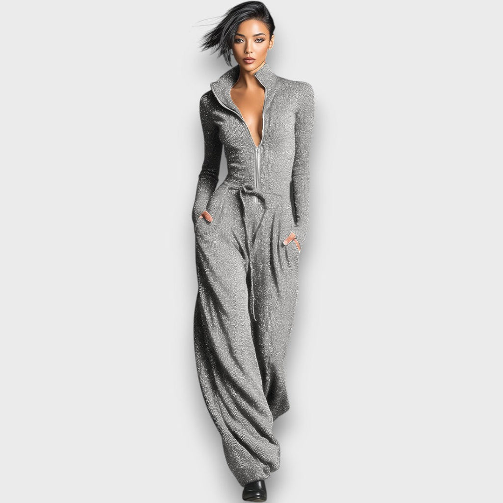 A design that perfectly combines sophistication and comfort. The long knit jumpsuit with a deep V-neckline drapes around your figure with a flowing silhouette, creating a look that is both modern and timeless. Whether for elegant evenings, stylish leisure moments, or a grand entrance – Elara accompanies you with natural elegance.