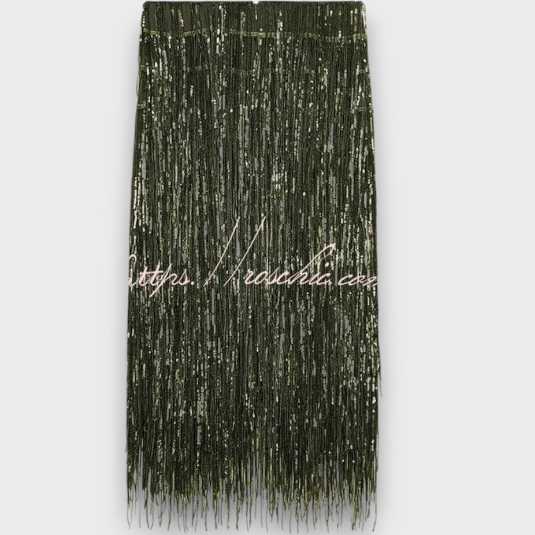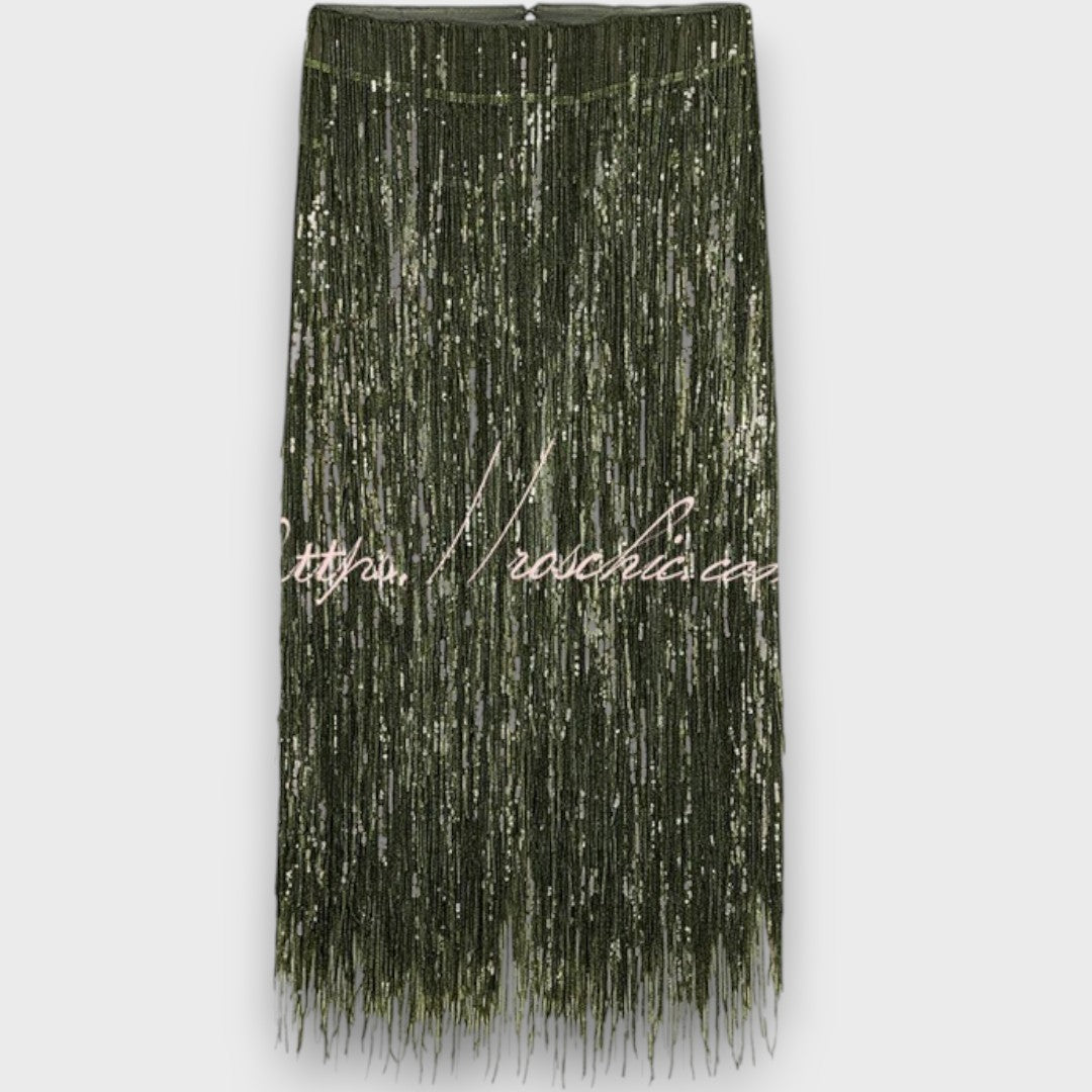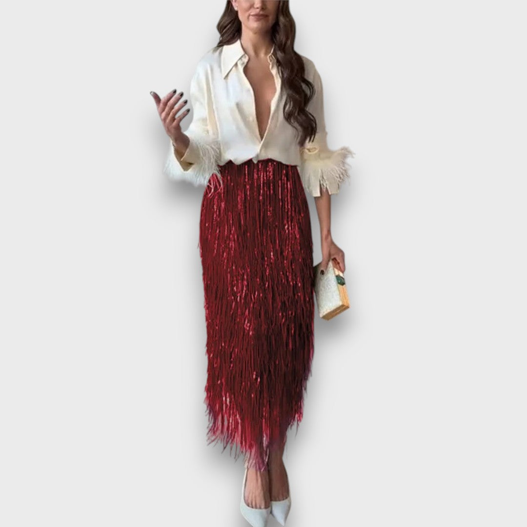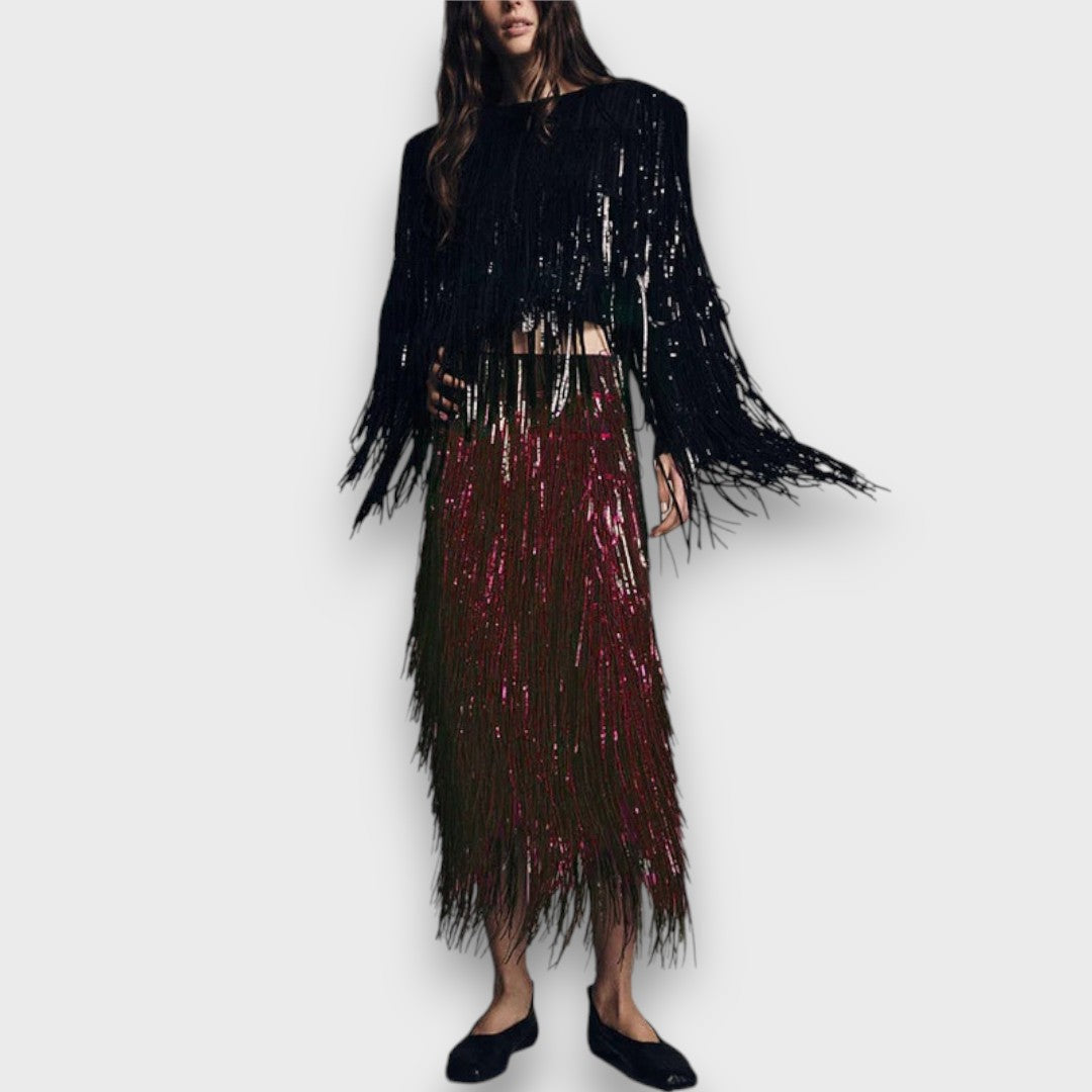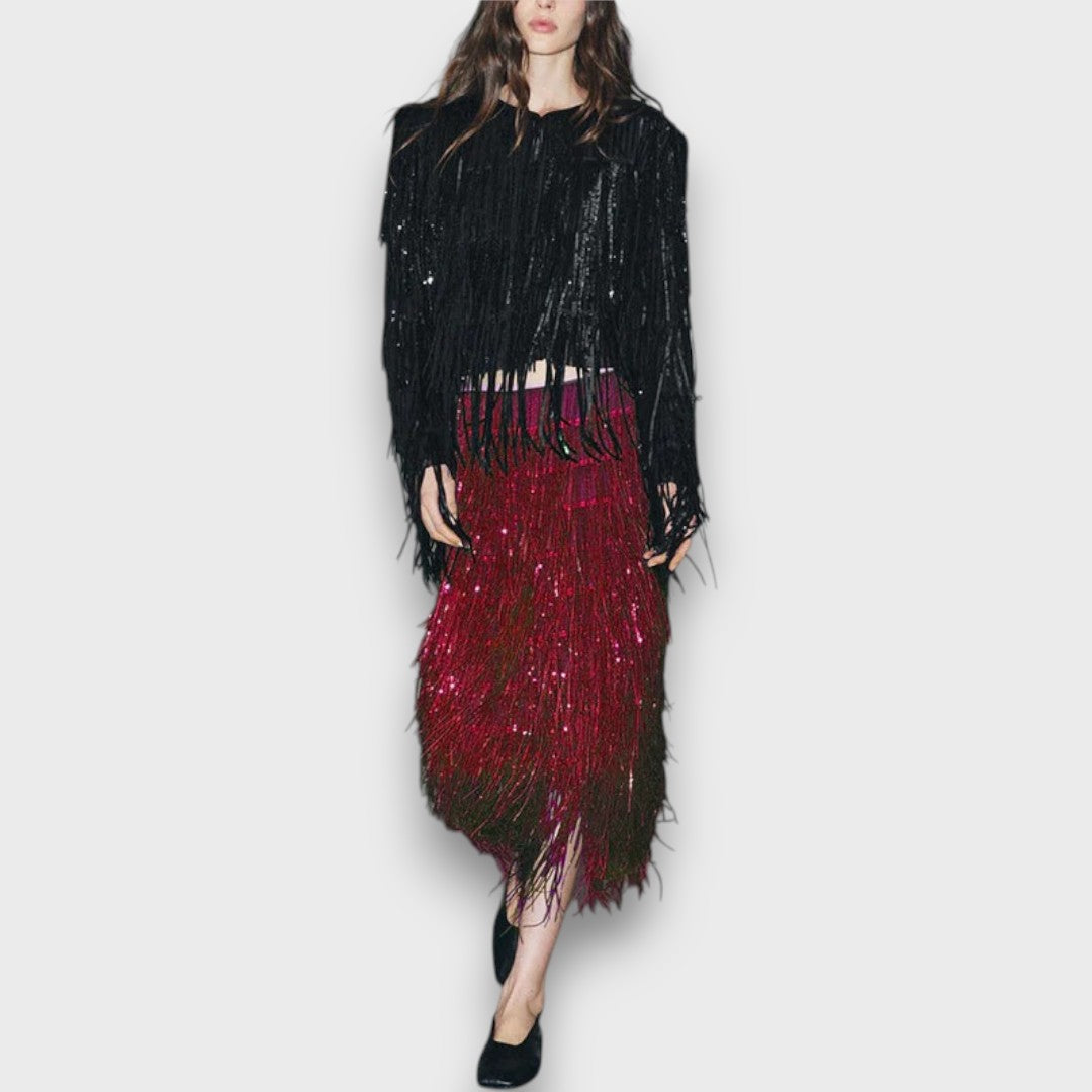 Serena β Layered Sequined Tassels High-Rise Midi Skirt