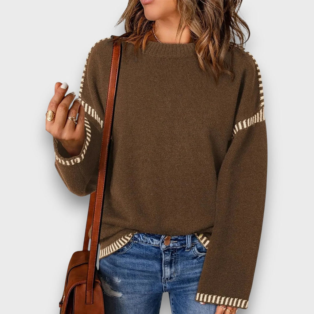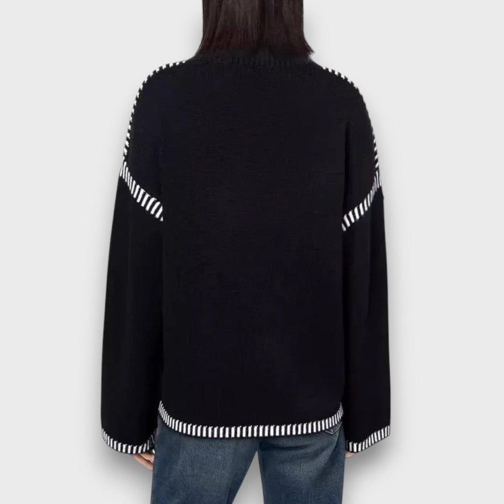 Corvella is cozy refinement made modern. With its relaxed cut, crew neckline, and striped edging, it turns an everyday sweater into a piece with character. Designed to slip effortlessly into your wardrobe, it’s just as ready for weekend strolls as it is for casual dinners, carrying ease and elegance in equal measure.